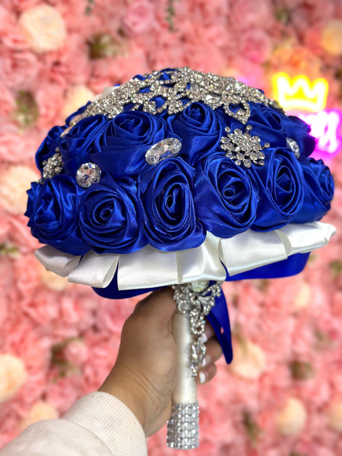 Royal blue and white rose bouquet